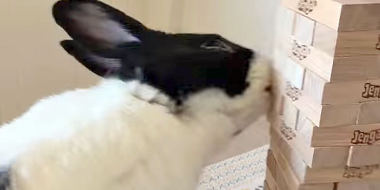 Mordecai the bunny—or “Morty” for short—doesn’t have any thumbs; but that doesn’t stop him from absolutely dominating at Jenga.