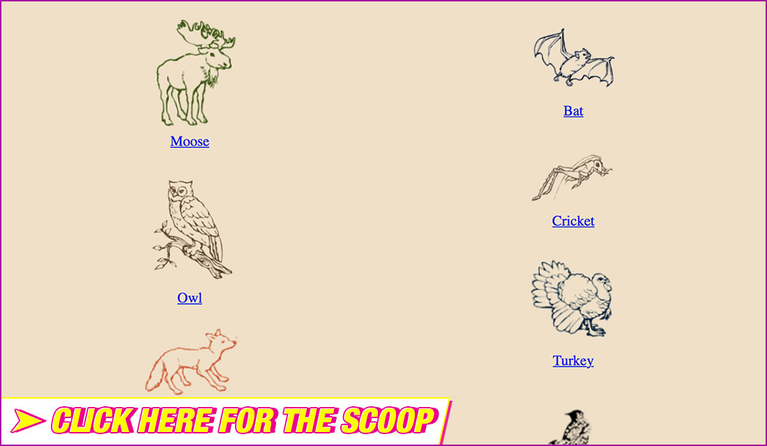 Click the animals to listen to their sounds. Then try to imitate them.